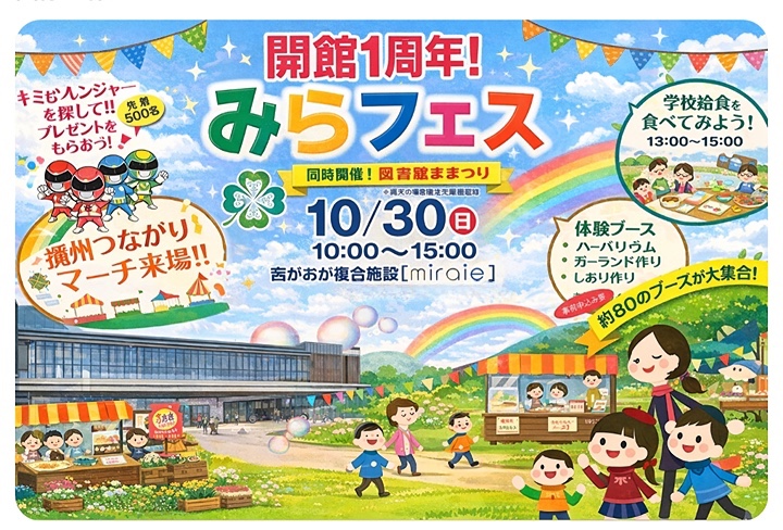 西脇市にある茜ケ丘複合施設「Miraie(みらいえ)」で、開館1周年を記念したイベント 「みらフェス」 が開催されました。