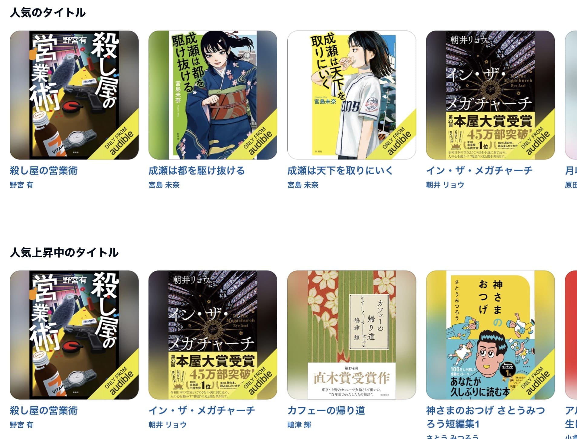 ナレーションとの相性もあるので、まずはお試し期間に総当たりで聞くのもいいっかな♪
