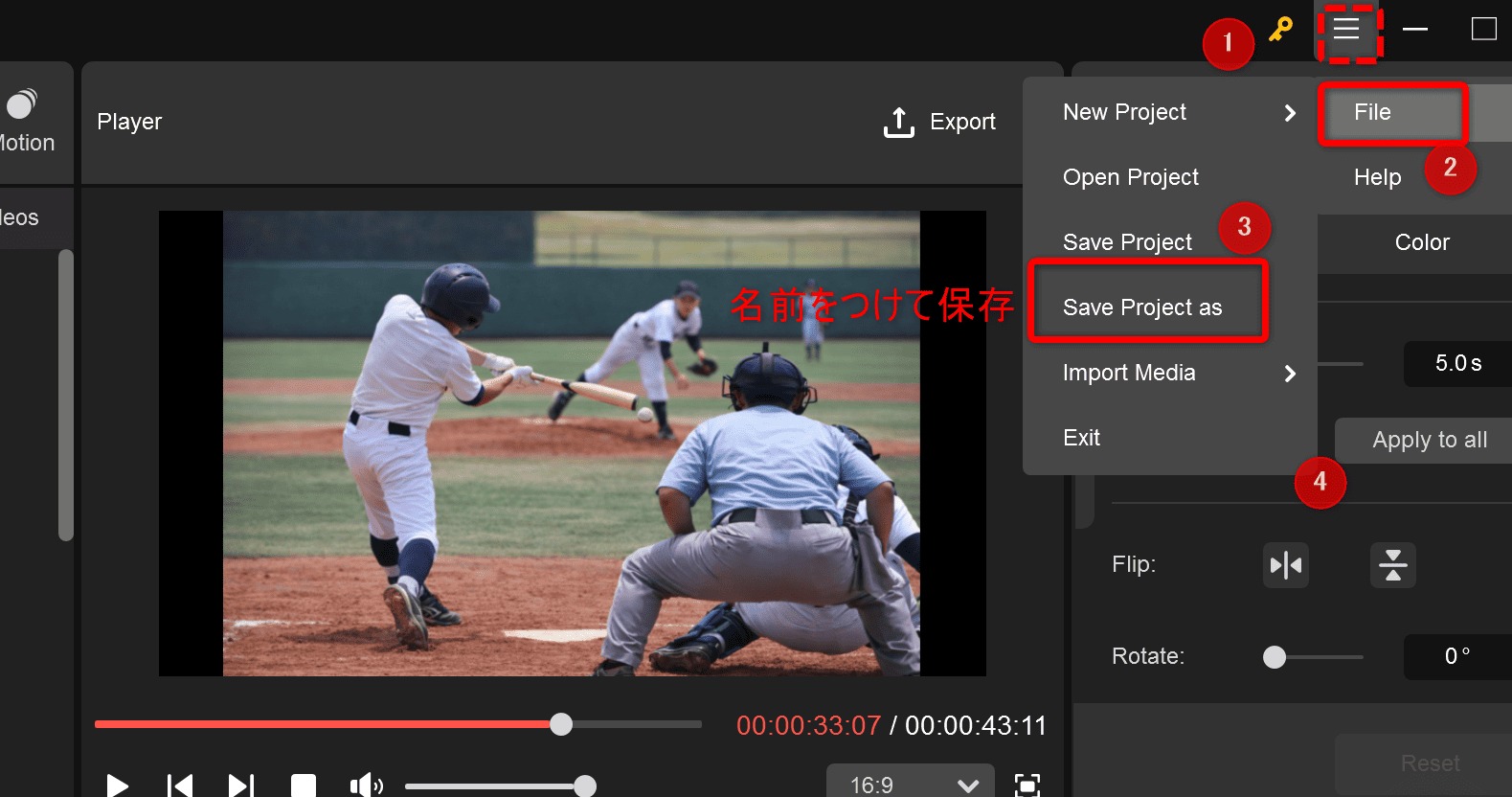 そんなときはプロジェクトファイルとして保存しておけば、後からいつでも続きの編集ができます。