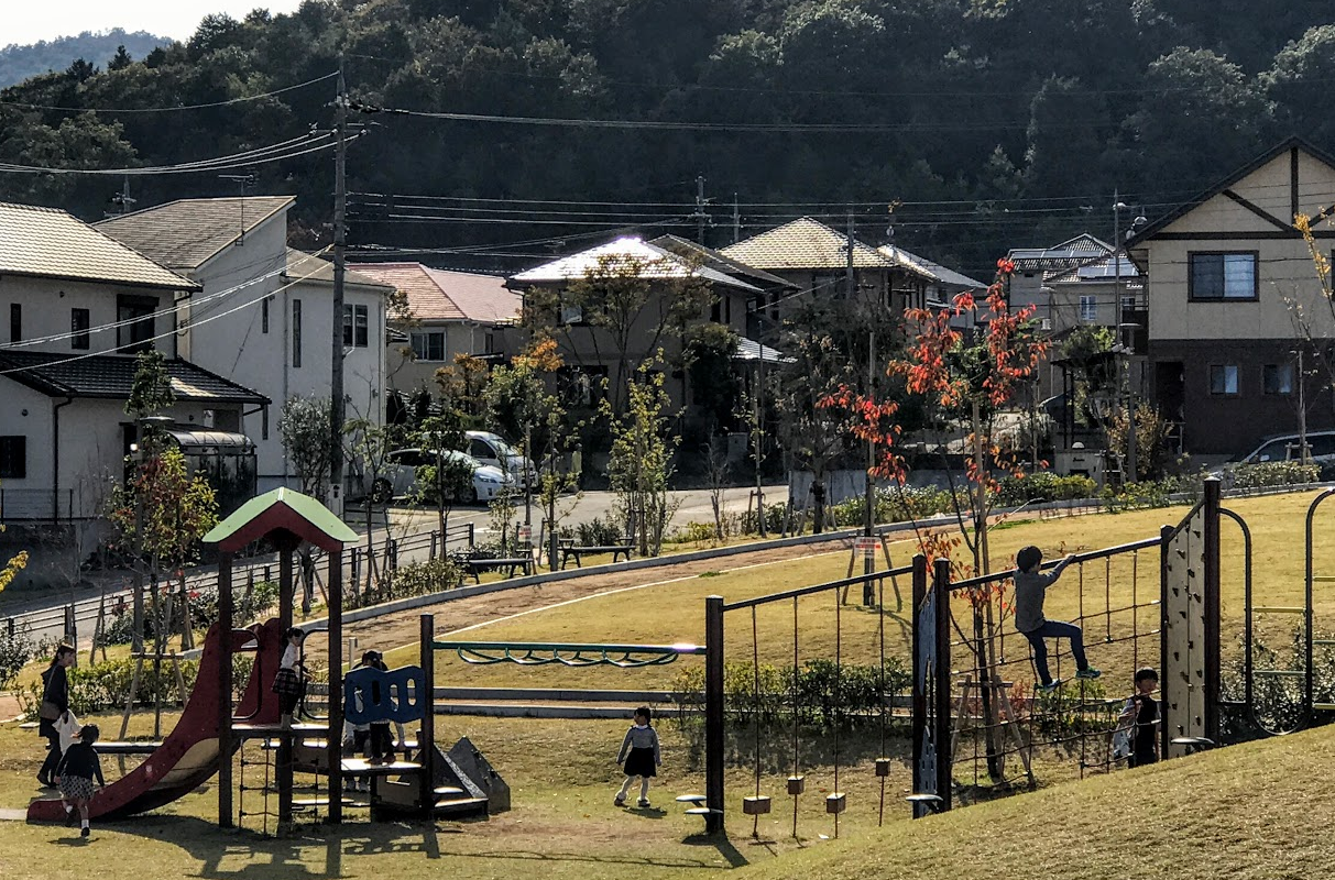 広場は住宅地の中にありますが、開放感があって、子どもが走り回っても気にならない雰囲気。
