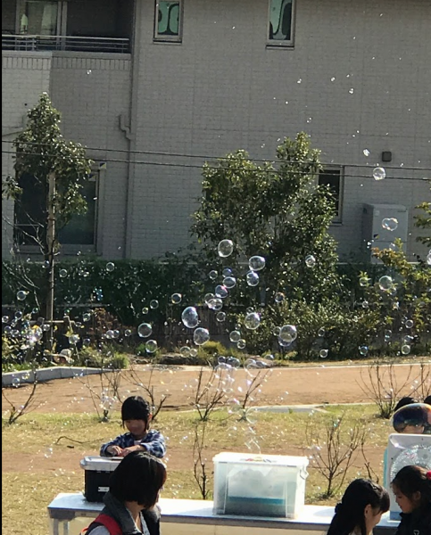 風に乗って、ふわふわ飛ぶシャボン玉。