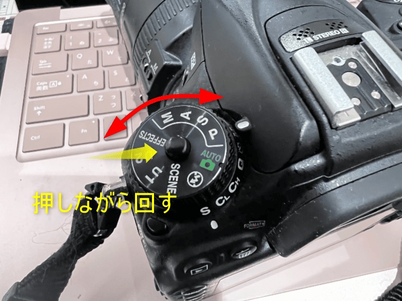 📸 真ん中のボタンを押しながら回すと、モードダイヤルが動きます。