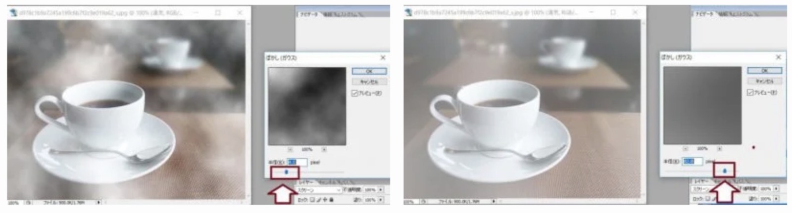 ② スライダーを左右に動かして、好みのぼかし加減に調整します。