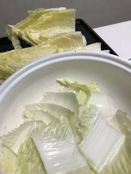 白菜の芯の部分を切り落とし、ザクザクと大きめに切る。